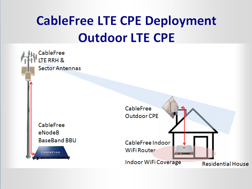 CableFree offer CPE devices for many applications including industrial, vehicle mount and high gain outdoor devices for long range connections and Rural Broadband applications. An example diagram showing long range connection using 4G LTE is here: