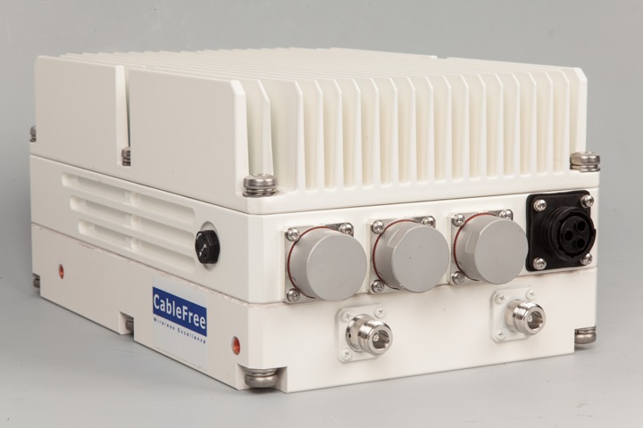 CableFree LTE-A eNodeB Base Station, featuring 2×2 MIMO, Carrier Aggregation. Other versions support 4×4 MIMO. Software Defined Radio supports LTE Release 13 and future software upgrades